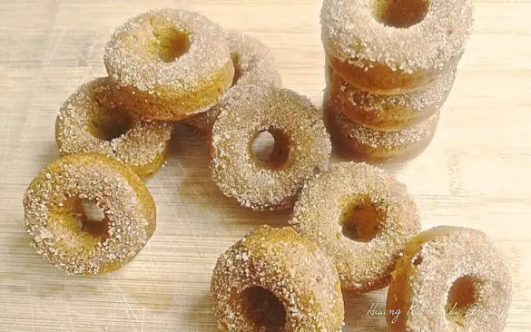 - The doughnuts can be eaten as is, decorated with your favourite glaze or sprinkle with cinnamon sugar. I am using cinnamon sugar as the topping.