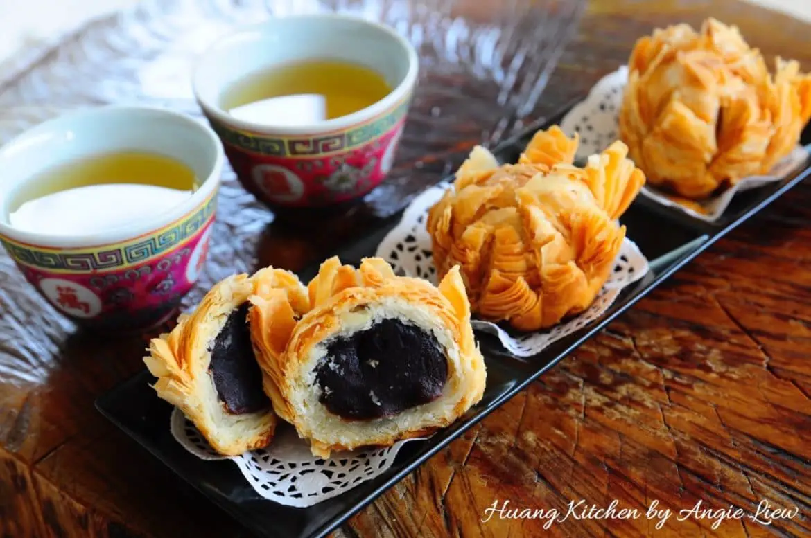 These Lotus Flower Mooncakes (梅花酥月饼) are a classic deep-fried version mooncakes with red bean paste filling and crisp puff pastry. These mooncakes are amazingly pretty looking when fried and taste so delicious, especially when eaten fresh. Although a bit laborious, preparation is not too difficult. It will definitely be all worth it when you take the first bite once its done!