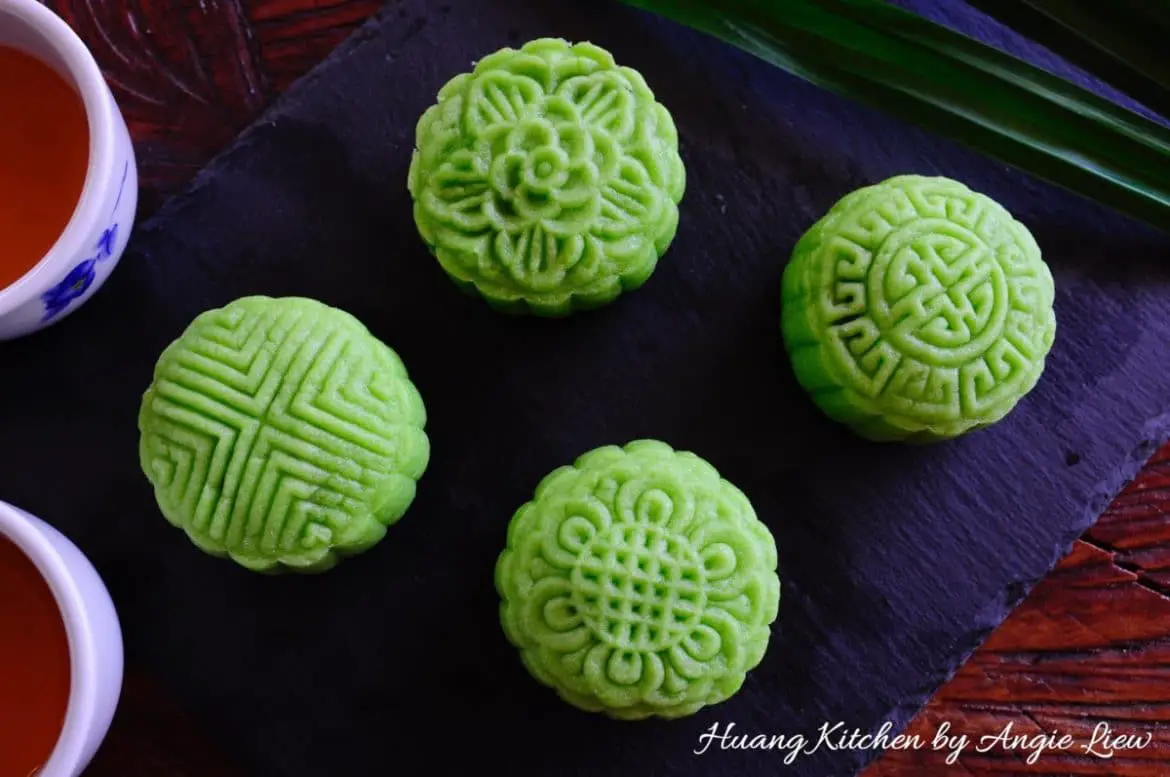 These Pandan Custard Lotus Snow Skin Mooncakes are such a decadent treat. These are non-bake mooncakes and are often served cold or at room temperature. These mooncakes are also known as crystal or ice skin mooncakes (Bing Pi Yue Bing 冰皮月饼).