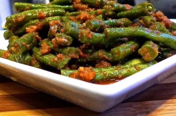 Cover and simmer on low heat until water evaporates and the long bean is cooked and is well coated into the sambal.