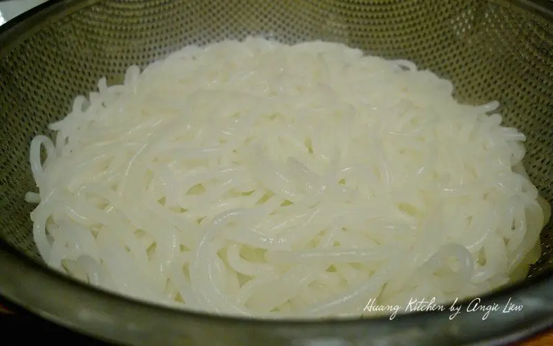 - 250 g rice noodles, or beehoon, round and spaghetti-thick