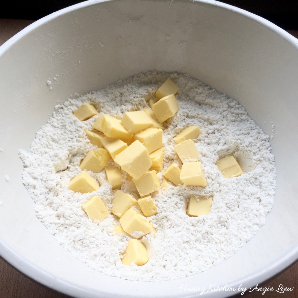 Add in COLD diced butter cubes.