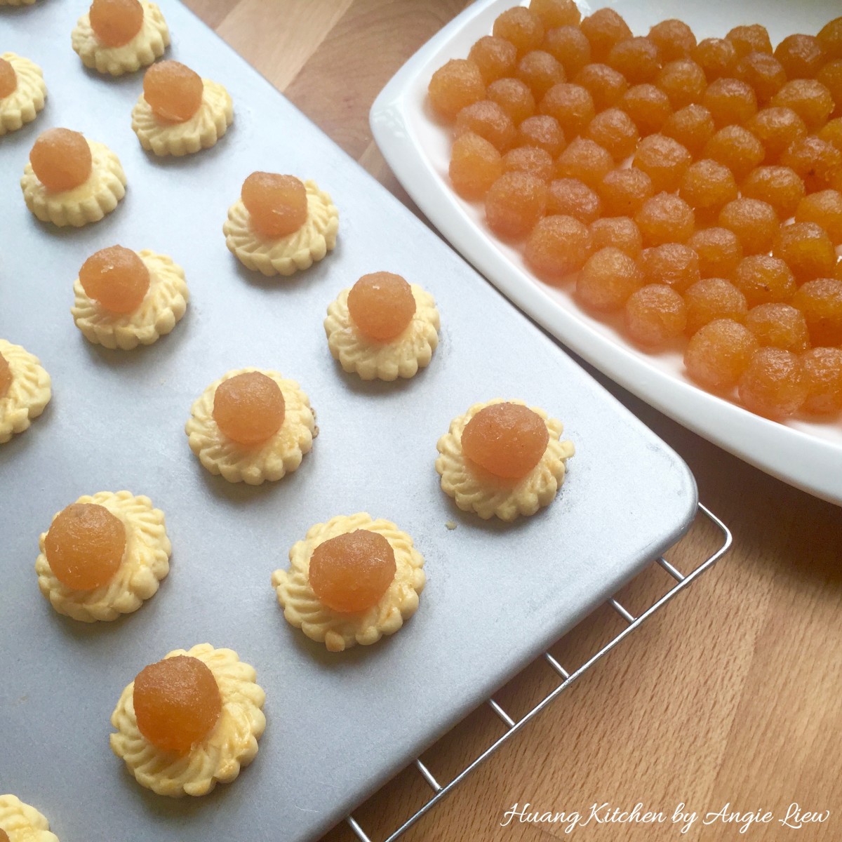 This is an open-faced pineapple tarts recipe. Pineapple tarts (黄梨塔) are small, bite-size pastries topped with pineapple jam. They are very popular during festive periods, be it Chinese New Year, Hari Raya, Deepavali or Christmas. They also make your high tea an extra special one. Making pineapple tarts may be laborious, especially if you are making your own jam (See our recipe on How To Make Pineapple Jam). However when done well, they are well worth the effort as they taste so much better than those purchased commercially.