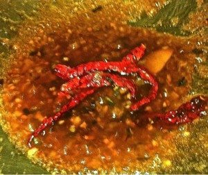 And the dried chillies and orange zest … stir fry until garlic turns golden brown and you smell the aroma of the chillies