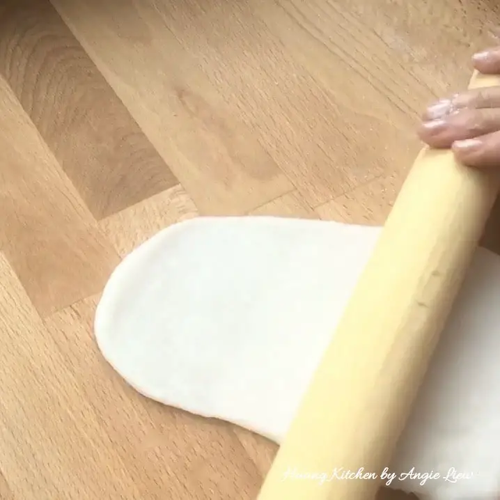 First, lightly dust the working surface and rolling pin with some flour. Then roll out the dough into a thin layer.