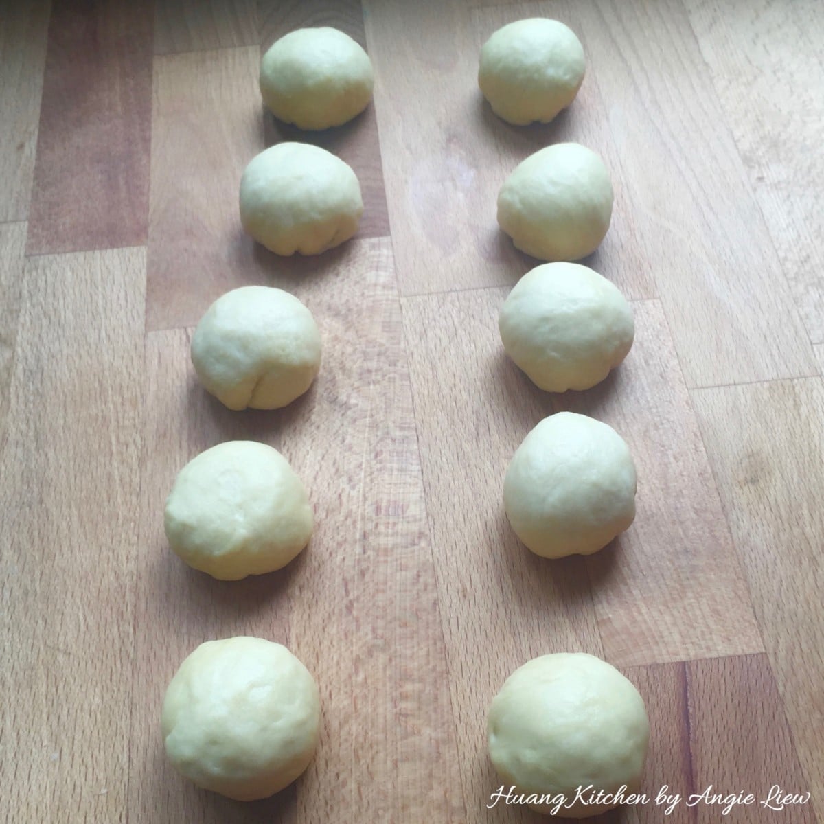 Then, divide the rested dough into 10 equal pieces, about 30g each.