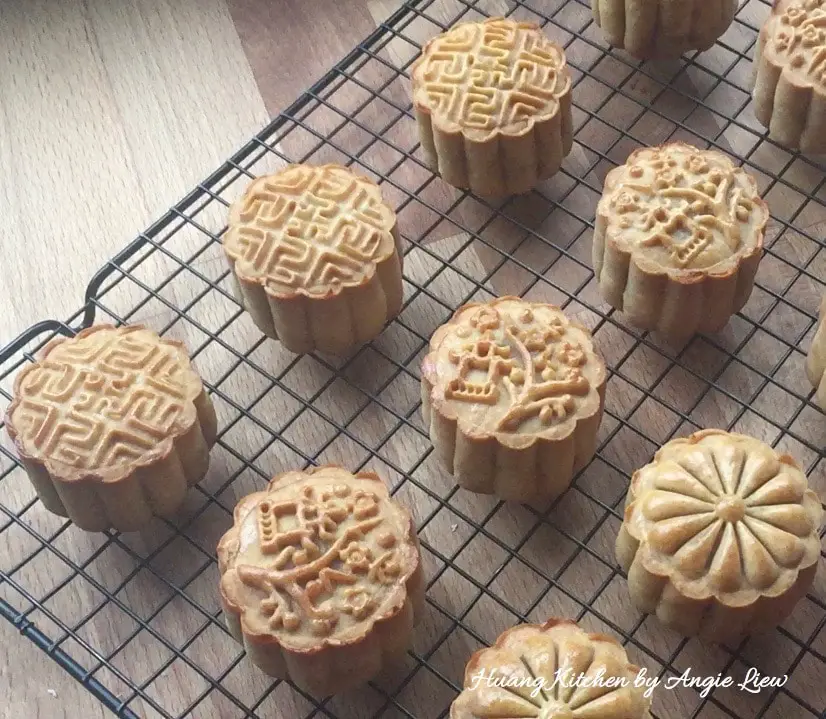 Then transfer the baked mooncakes to cool completely on wire rack before storing them in an airtight container.