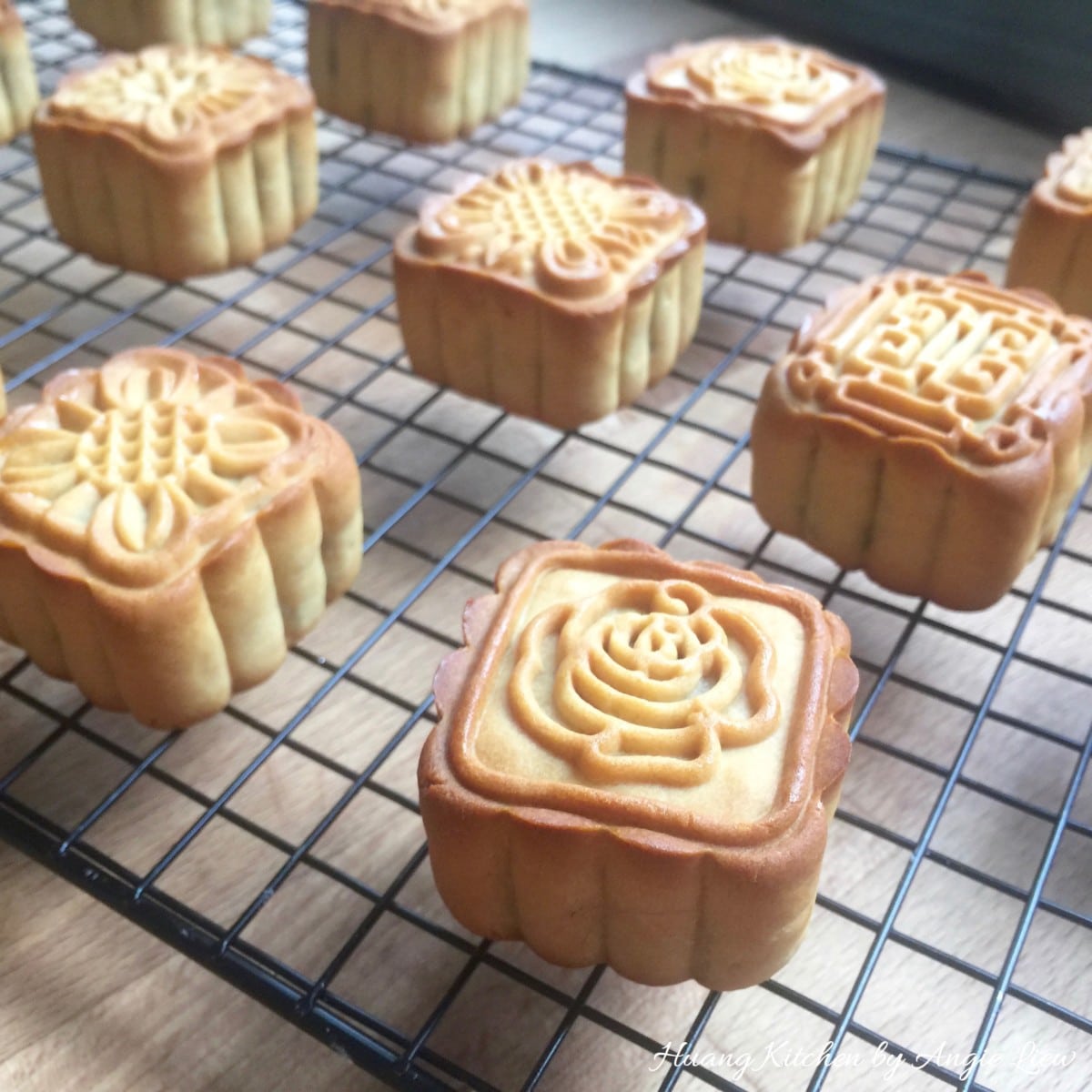 Then transfer the baked mooncakes to cool completely on wire rack before storing them in an airtight container.