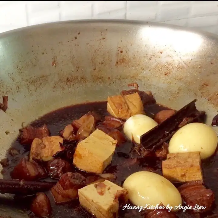 Then add the fried beancurd and hard-boiled eggs. Allow to simmer with lid on for another 10 minutes. And we’re done!