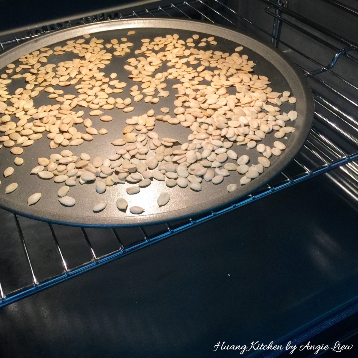 Next, roast melon seeds in the preheated oven for 5 minutes.